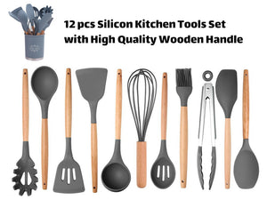 Silicon Kitchen Utensil Set with Wooden Handle 12 pcs